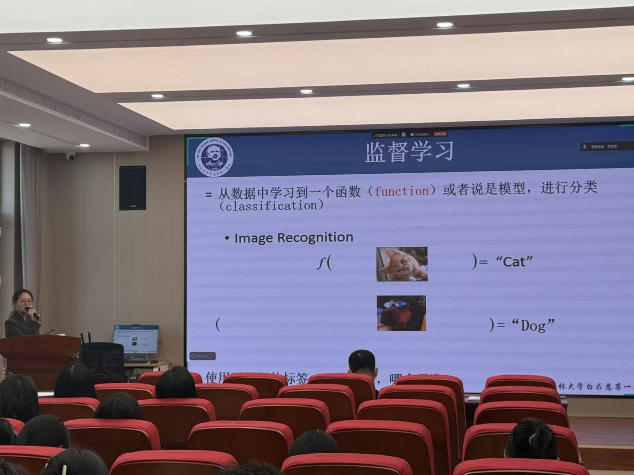 在接下来的报告中,田教授详尽地阐述了支持向量机,其核心逻辑是在正确分类前提下最大化间隔宽度。理想线性可分场景下,通过构建超平面使两类样本分别位于两侧,超平面两侧最近样本即为 “支持向量”;面对线性不可分问题时,采用 “核函数” 实现升维转换,比如将二维中无法分离的样本映射到三维空间找到分离超平面,再投影回二维形成非线性边界,PPT 中实例显示升维后模型准确率可从 75% 提升至 100%。同时,SVM 性能评估需区分 “训练误差”(训练集表现,如 0/18)与 “测试误差”(新数据泛化能力,如 3/18),以此避免过拟合。