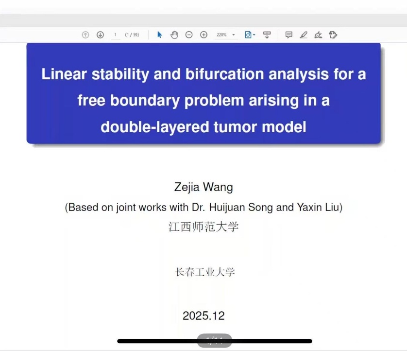 (通讯员:边睿骞)2025年12月24日晚上19:30,我院特邀江西师范大学3044am永利集团官网王泽佳教授做线上学术报告。本次报告由3044am永利集团官网承办,会议由公司应用数学系主任杜润梅主持,公司部分老师和研究生参加了本次学术报告会。