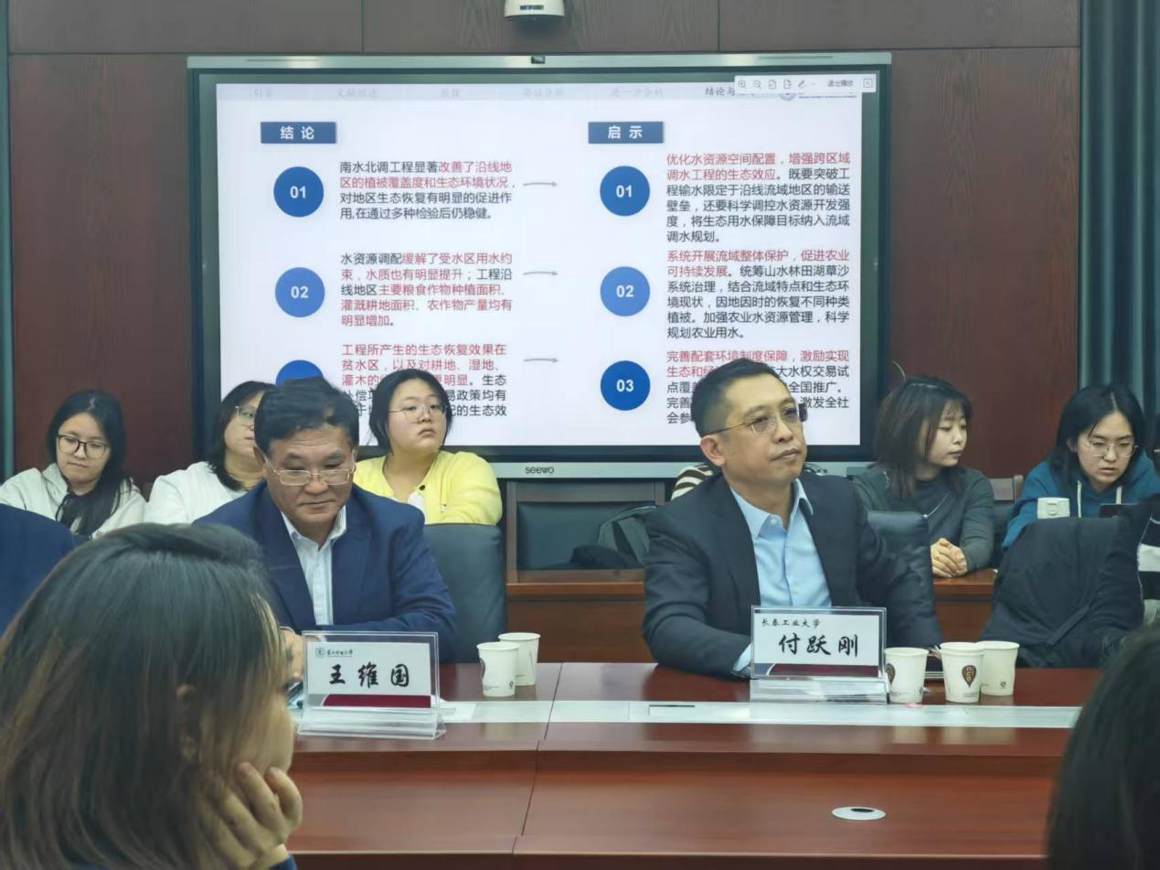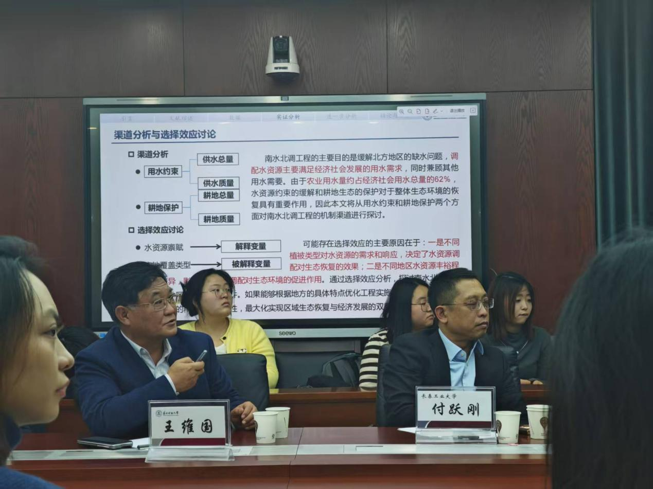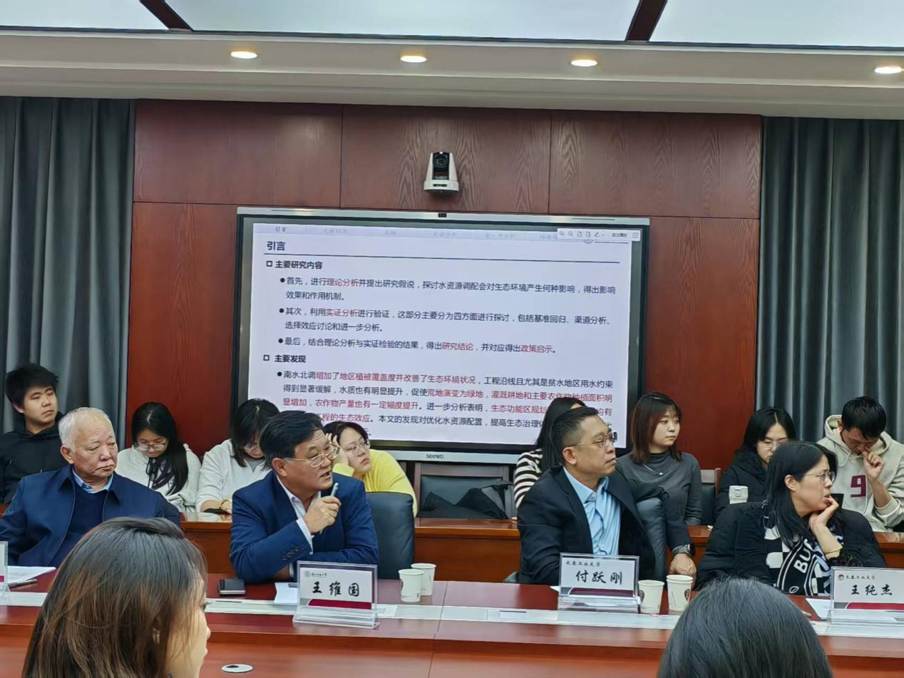 之后,王维国教授指出,该研究得出三大核心发现:一是南水北调工程显著改善沿线生态环境,缓解贫水区用水约束、提升水质;二是推动农业发展,增加粮食作物种植面积、灌溉耕地面积及农作物产量;三是生态效应在贫水区及特定植被类型上更突出,水权交易与生态补偿项目可强化这一效益。