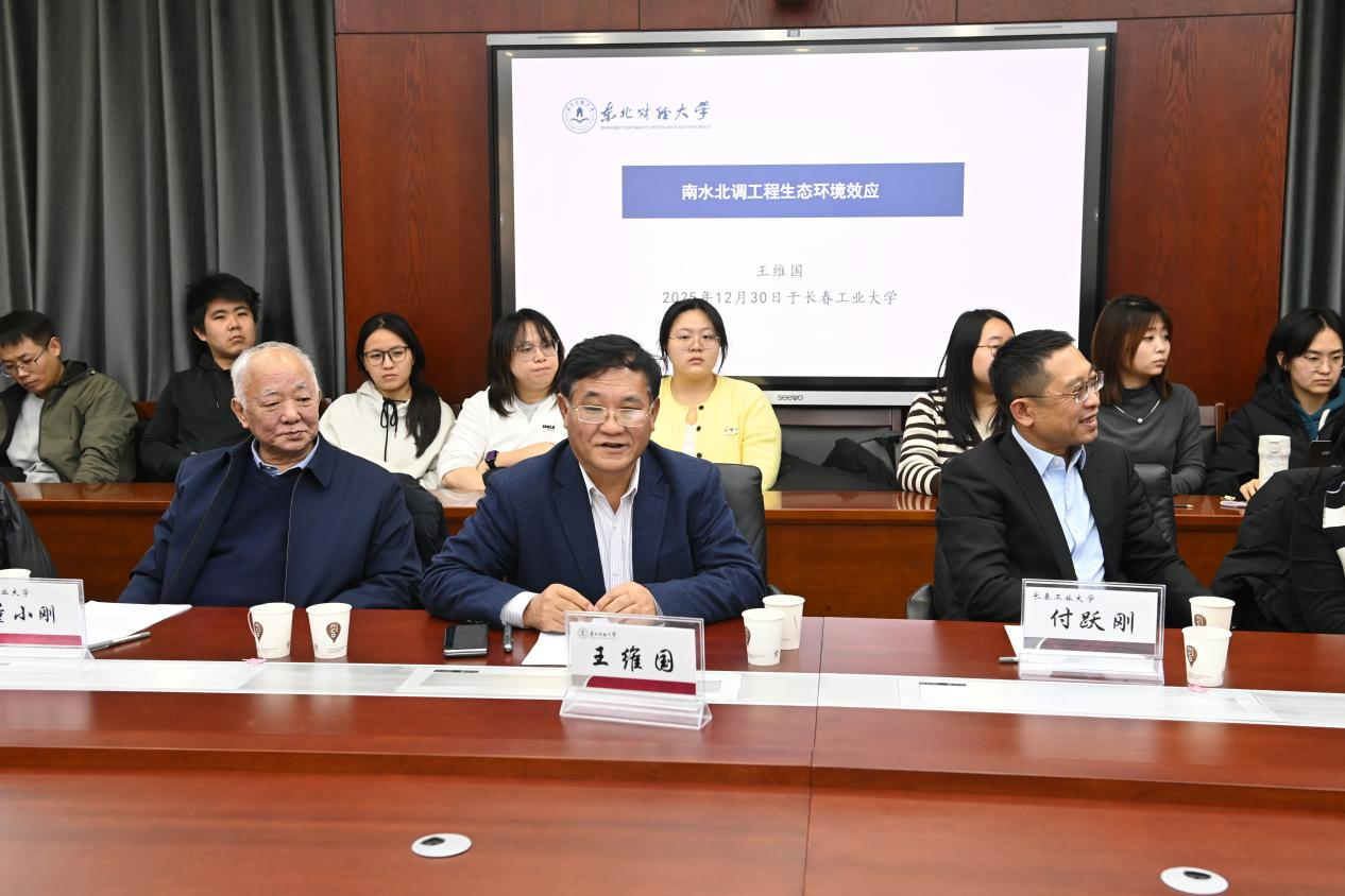 (通讯员:李相楠)2025年12月30日下午15:00,东北财经大学王维国教授莅临3044am永利集团官网3044am永利集团官网,针对南水北调工程生态环境效应作学术报告。本次报告由3044am永利集团官网承办,在南湖校区办公楼五楼会议1561室进行,会议由3044am永利集团官网院长王纯杰教授主持,3044am永利集团官网校长付跃刚、校教学指导委员会副主任董小刚、校学科建设办公室副主任兼大数据研究院院长秦喜文、公司副院长杨凯、公司副院长李纯净等老师及研究生参加了本次学术报告会。