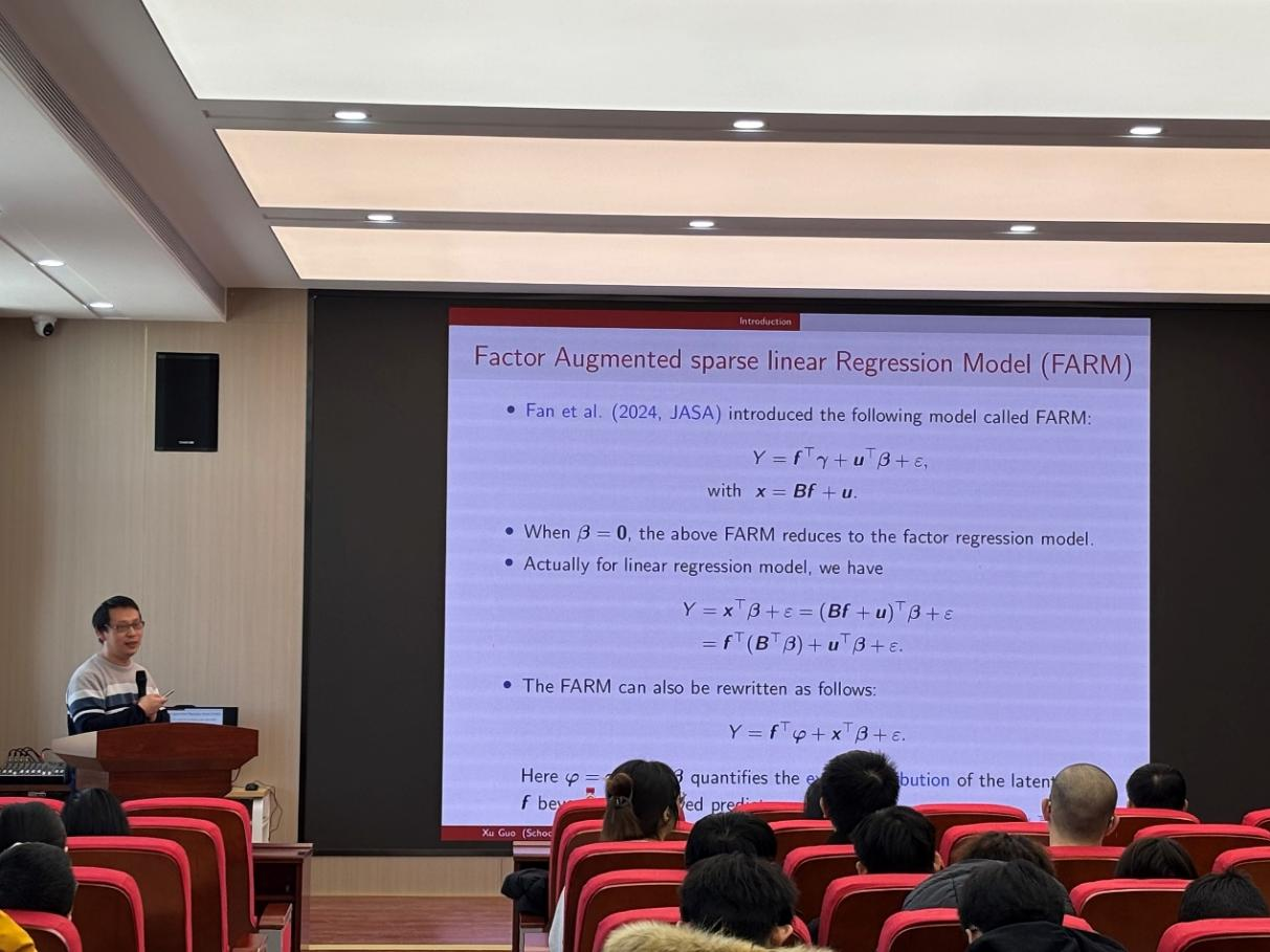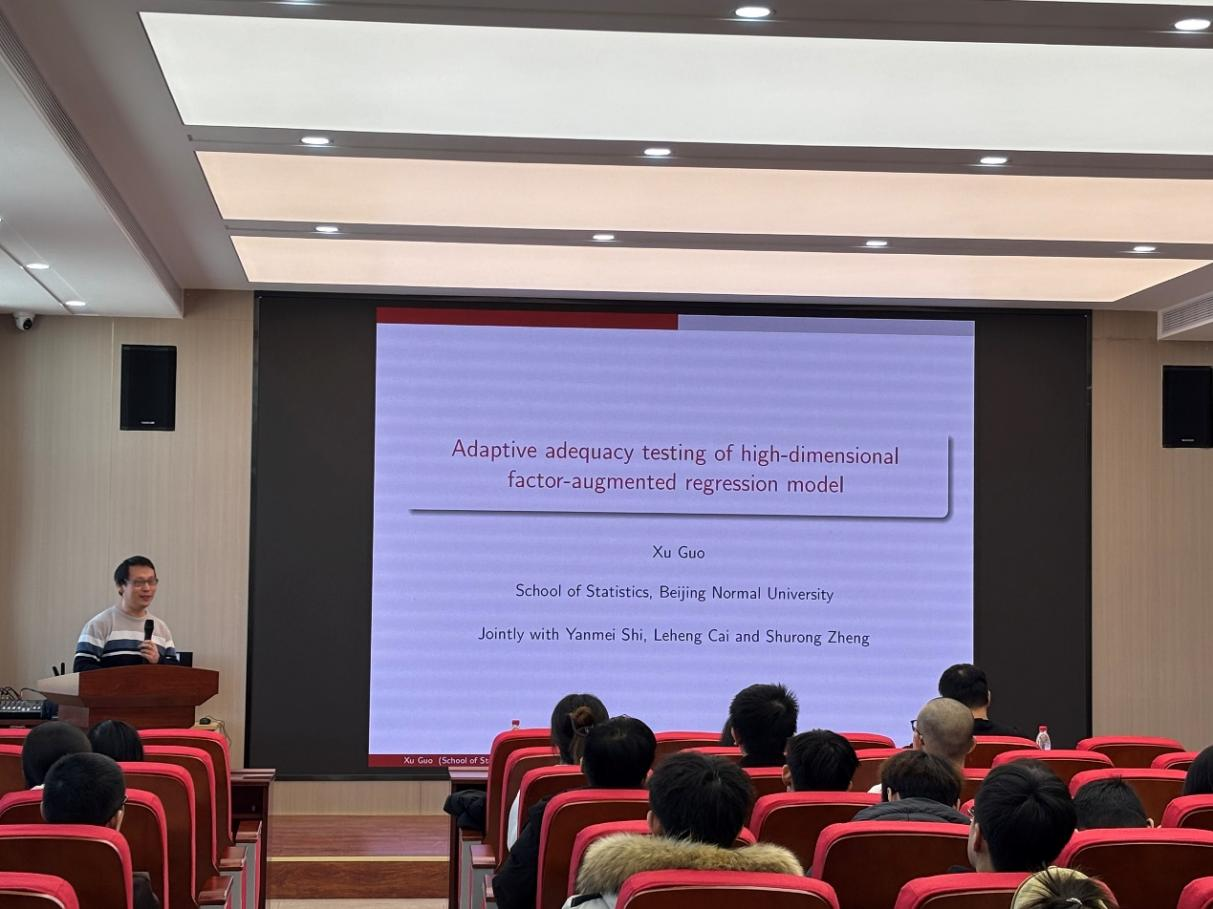 (通讯员:边睿骞)2026年1月8日下午13:30,我院特邀北京师范大学统计公司郭旭教授做学术报告。本次报告由3044am永利集团官网承办,会议由公司副院长杨凯教授主持,公司袁晓惠老师等及部分研究生参加了本次学术报告会。