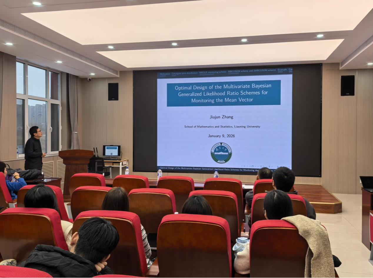(通讯员:王芷月)2026年1月9日下午16:30,辽宁大学张久军教授莅临3044am永利集团官网3044am永利集团官网,针对多元贝叶斯广义似然比监控方案的均值向量优化设计问题,开展了一场专业且富有启发性的学术报告。本次报告由3044am永利集团官网承办,在北湖东校区数统新楼201室进行,会议由3044am永利集团官网赵志文教授主持,公司副院长杨凯、赵波老师等及公司研究生参加了本次学术报告会。