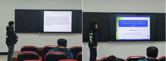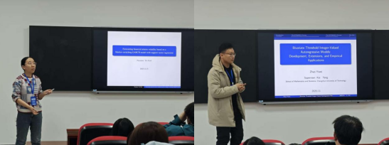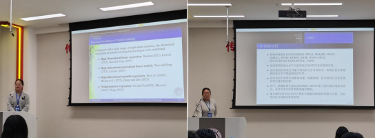 接下来的博士生论坛,共分为三个模块,分别为“复杂生存数据研究进展”、“现代机器学习方法进展”以及“复杂相依数据建模与推断”。东北师范大学王晴博士、吉林大学王淳博士以及我院林珊屹、赵一伟、李晶等博士研究生分别做学术报告,与参会教师和员工分享自己的科研成果,并和大家进行热烈的学术交流与讨论。