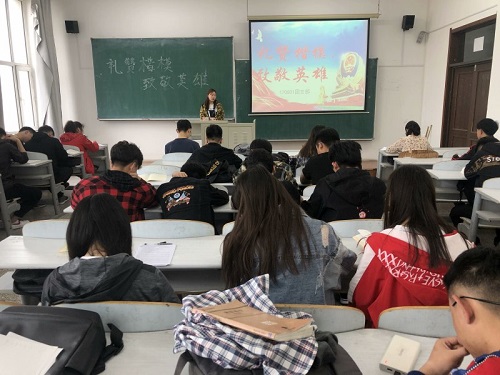 在团课的开始,团支书向同学们提出了“何为英雄”的问题,并做出回答:“英雄是一个具有爱国情怀、民族气节、必胜信念、英雄气概这四个优秀品质的人。”为了强调英雄对一个民族的重要性,各班团支书向同学们介绍了几位典型的民族英雄,他们分别是鸦片战争英雄林则徐,抗日战争英雄杨靖宇、佟麟阁、赵一曼,和平年代英雄袁隆平、焦裕禄等人。在团课的结尾,180801班团支书闫新洋总结道:“学习英雄要求我们从小树立远大志向,要求我们从小拥有拼搏的精神,要求我们从小具有勇于担当的勇气。当遇到一些人胡编乱造,故意抹黑英雄烈士时,我们作为大员工,一定要敢于站出来自觉抵制并与这种丑恶行为作斗争。”